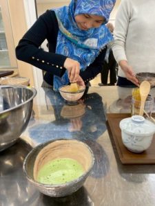 また、「お菓子を先に食べてから抹茶をいただく」という基本的な流れも教えていただきました。